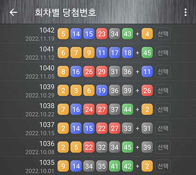 이런 로또번호 회차별 검색 기능은 로또 당첨 예상번호 생성할 때 로또분석 자료로서 활용될 수 있습니다.