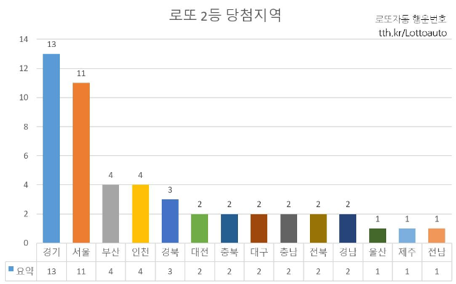 지역별로 당첨 인원을 비교해 보세요. 어떤 지역이 많은 당첨자 나왔을까요?