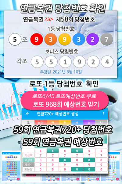 무제한 무료로 로또 1등 예상번호를 받을 수 있고, 연금복권 당첨번호도 조회 됩니다.