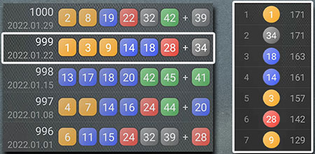 이번주 로또 1001회 당첨번호 분석에서는 최근 5주 출현에서 3개, 미출현에서 3개 번호를 1001회 예상번호로 선택해 보려고 합니다.
