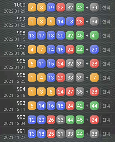 다른 검색 조건으로 이번주 로또 행운번호 찾고 싶다면 아래 로또1001회당첨번호 눌러서 로또번호 자동생성을 열어 보세요.