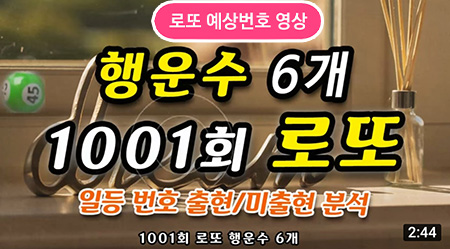 로또당첨번호 흐름을 직접 보시려면 로또번호 자동생성으로 1001회 로또번호 분석 내용을 살펴 보세요.
