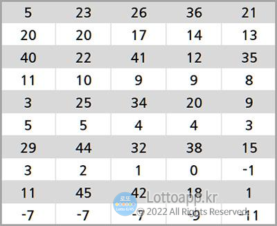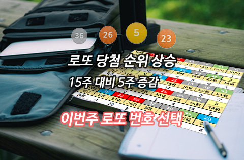 5번, 23번이 20위 증가된 숫자로 확인되고, 17위 상승한 26번, 14위 상승한 36번 등 상승된 번호들 확인할 수 있습니다.