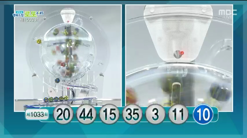 20번 44번 15번 35번 3번 11번 10번 순서로 로또복권 추첨기에서 나왔네요.