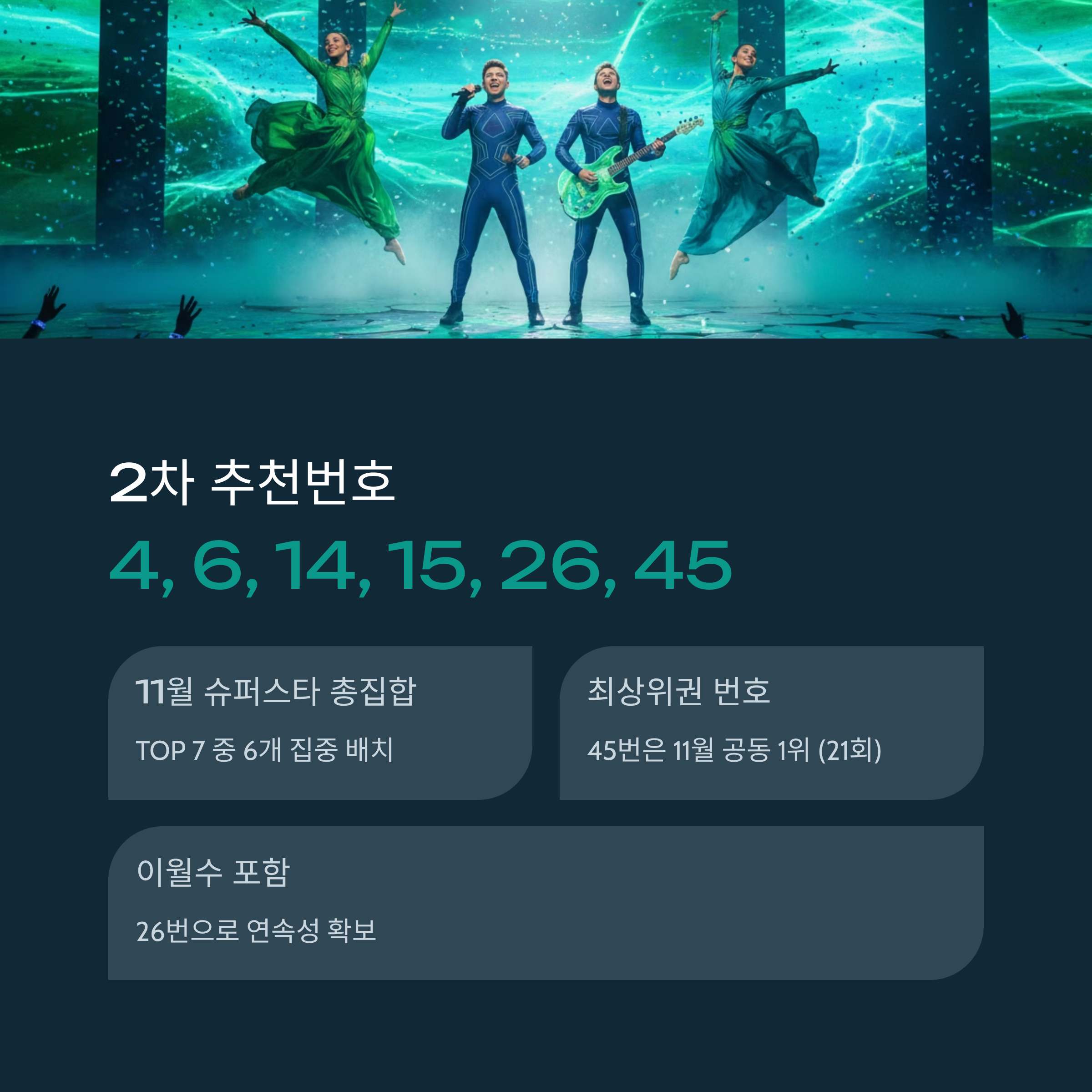 - 4, 6, 14, 15, 26, 45 - 11월 TOP 7 집중 조합