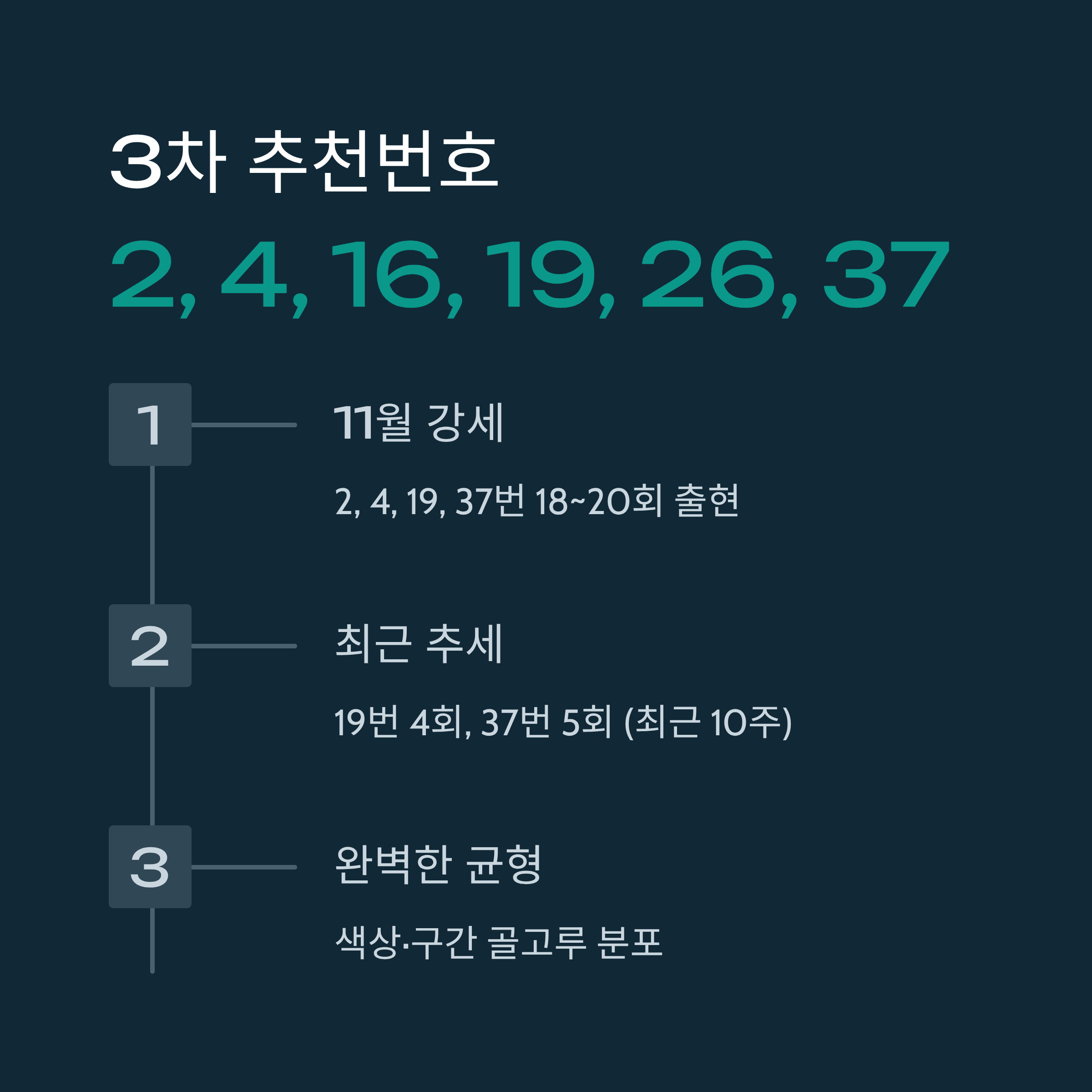 - 2, 4, 16, 19, 26, 37 - 최근 추세 + 11월 강세 조화