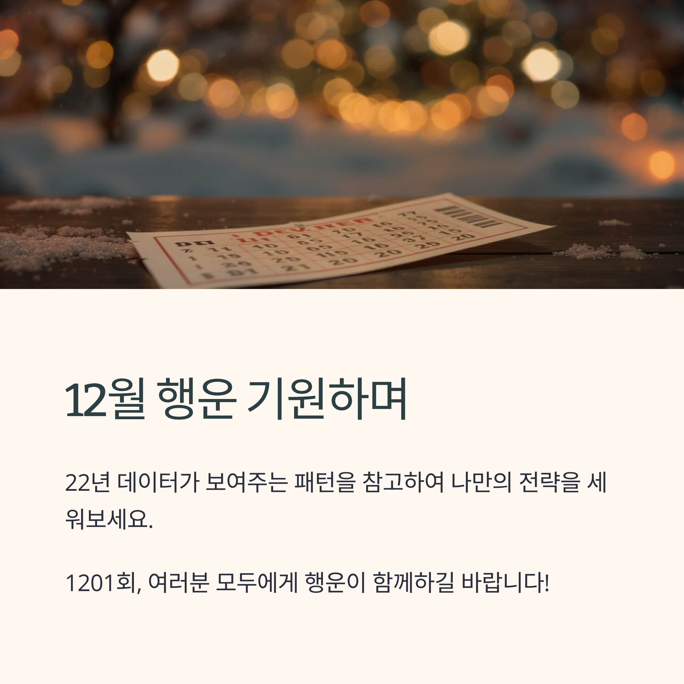 12월의 첫 추첨, 1201회에서 여러분 모두에게 행운이 함께하길 바랍니다.