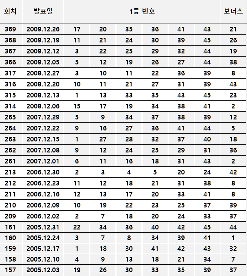 12월에 잘 나오지 않는 로또번호 정리