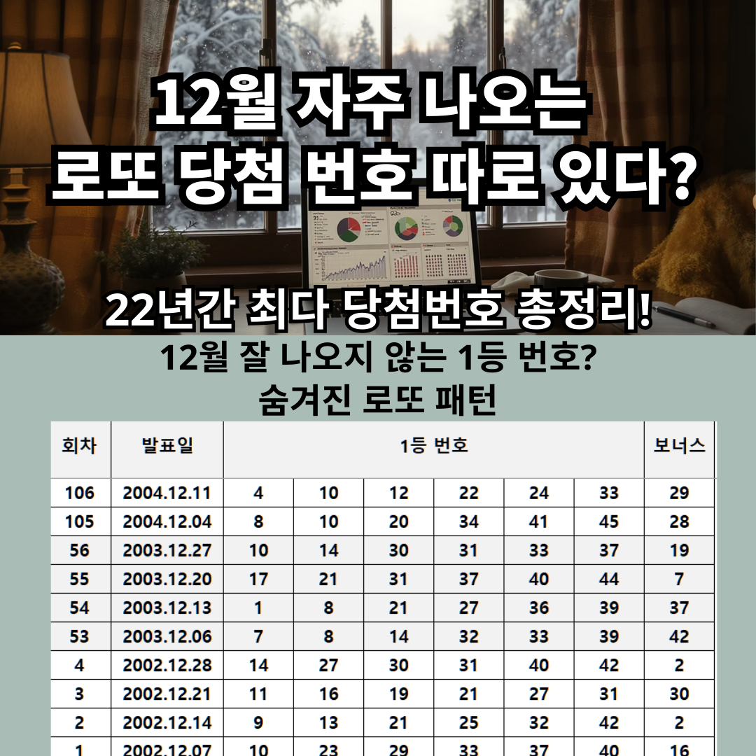 2002년 12월 7일 로또 1회차부터 2024년 12월 28일 1152회차까지, 12월에만 진행된 추첨 결과를 면밀히 분석해보겠습니다.