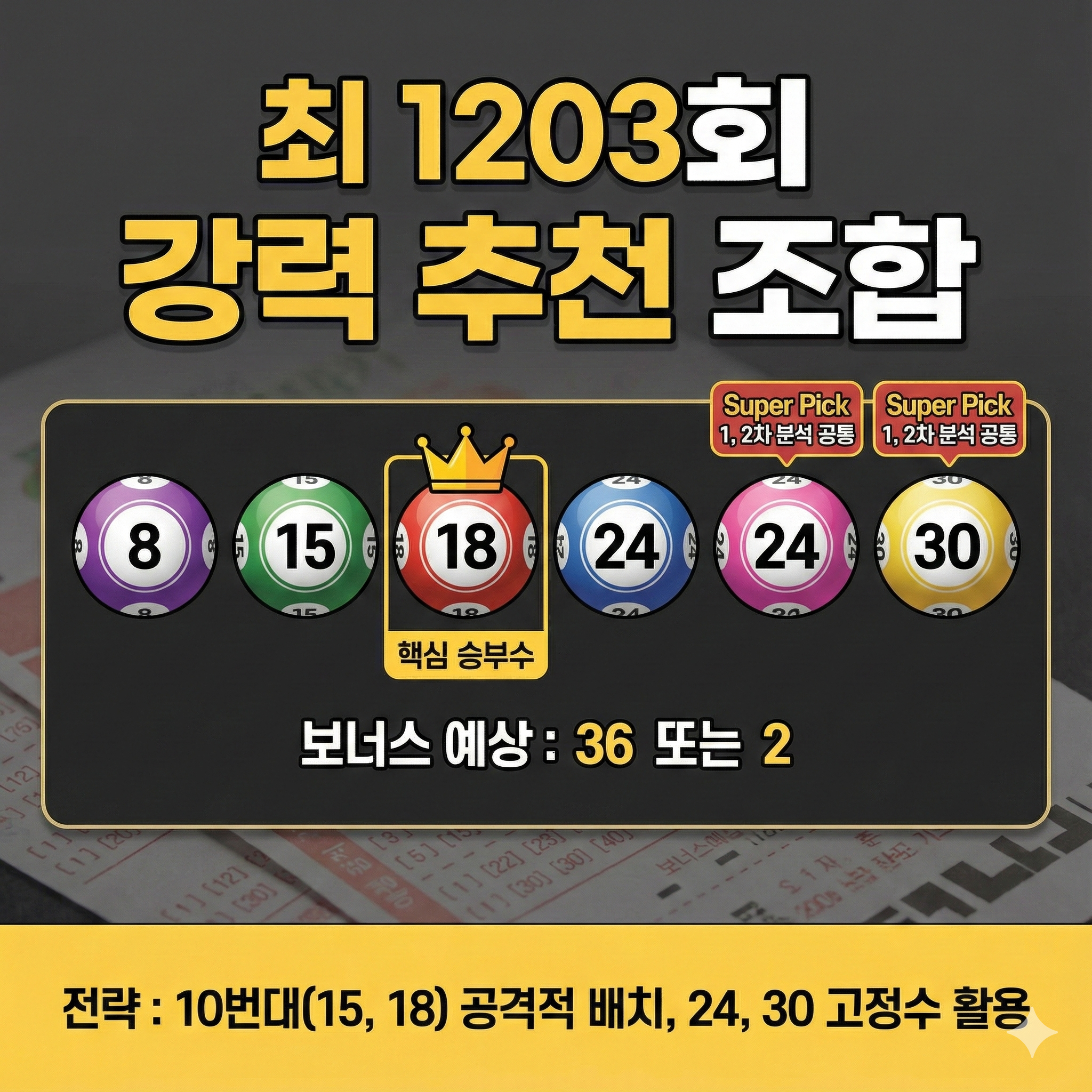 이제 1202회에서 확인한 흐름을 1203회 로또 번호 예측에 그대로 적용해봅니다. 이번 예측은 크게 세 가지 기준을 중심으로 접근했습니다.