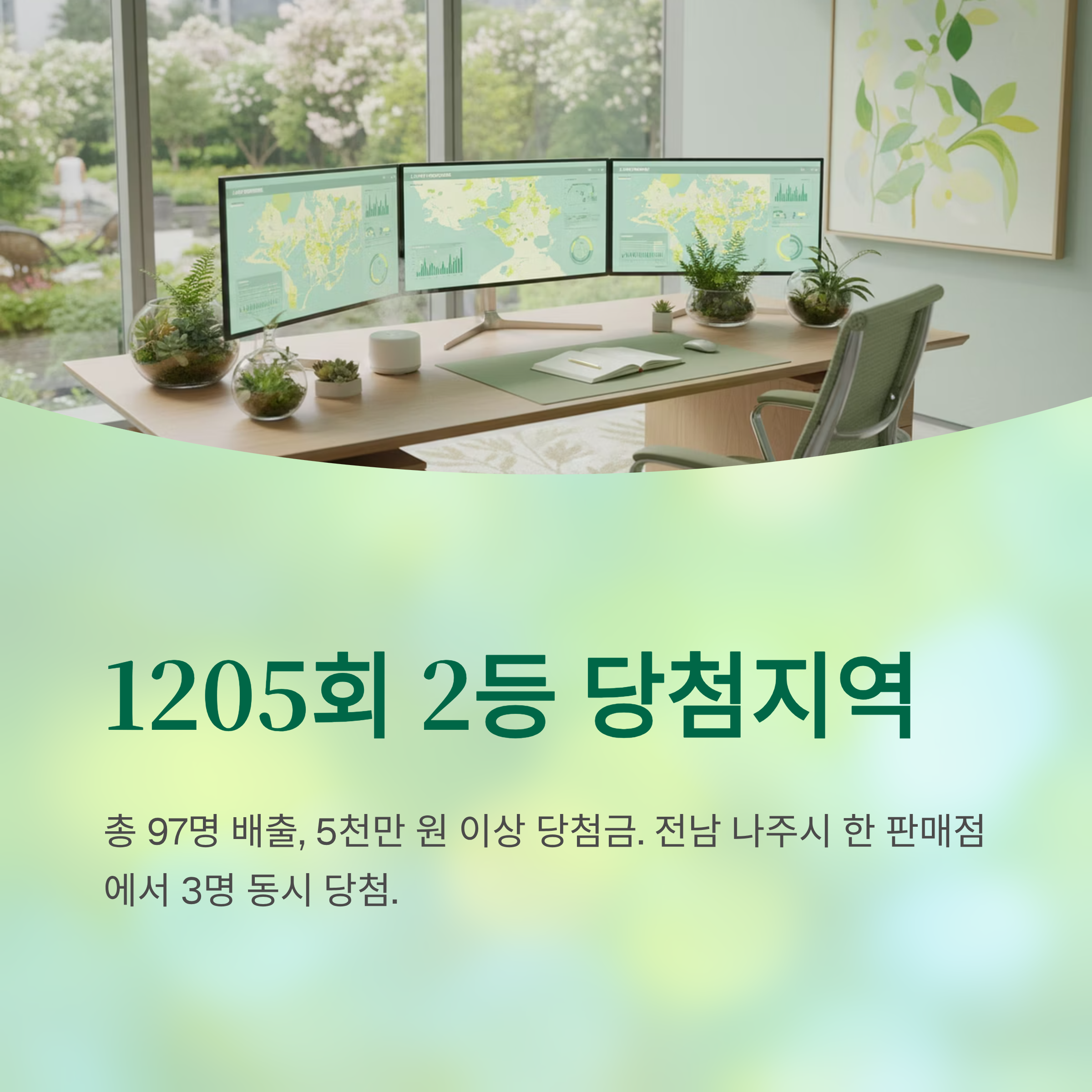 1등에 비해 덜 주목받지만, 2등 당첨도 5천만 원이 넘는 큰 금액입니다. 세금을 제외하더라도 목돈을 손에 쥘 수 있는 금액이죠. 이번 1205회 2등 당첨자는 총 97명으로, 전국 각지에서 고르게 배출되었습니다.