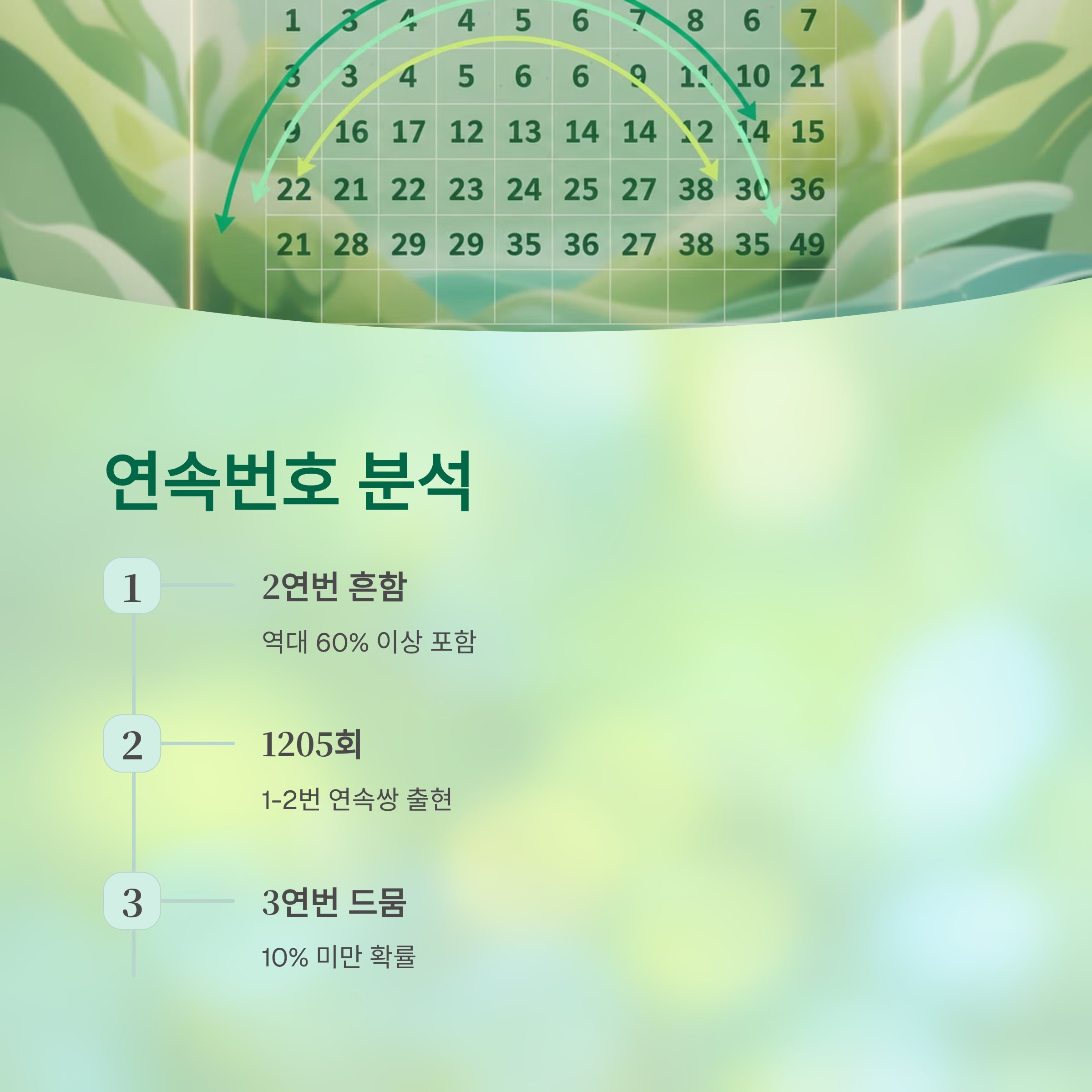 다만 3연번 이상은 피하는 것이 좋습니다. 역대 통계상 3연번이 나올 확률은 10% 미만이므로, 확률적으로 불리한 선택입니다.