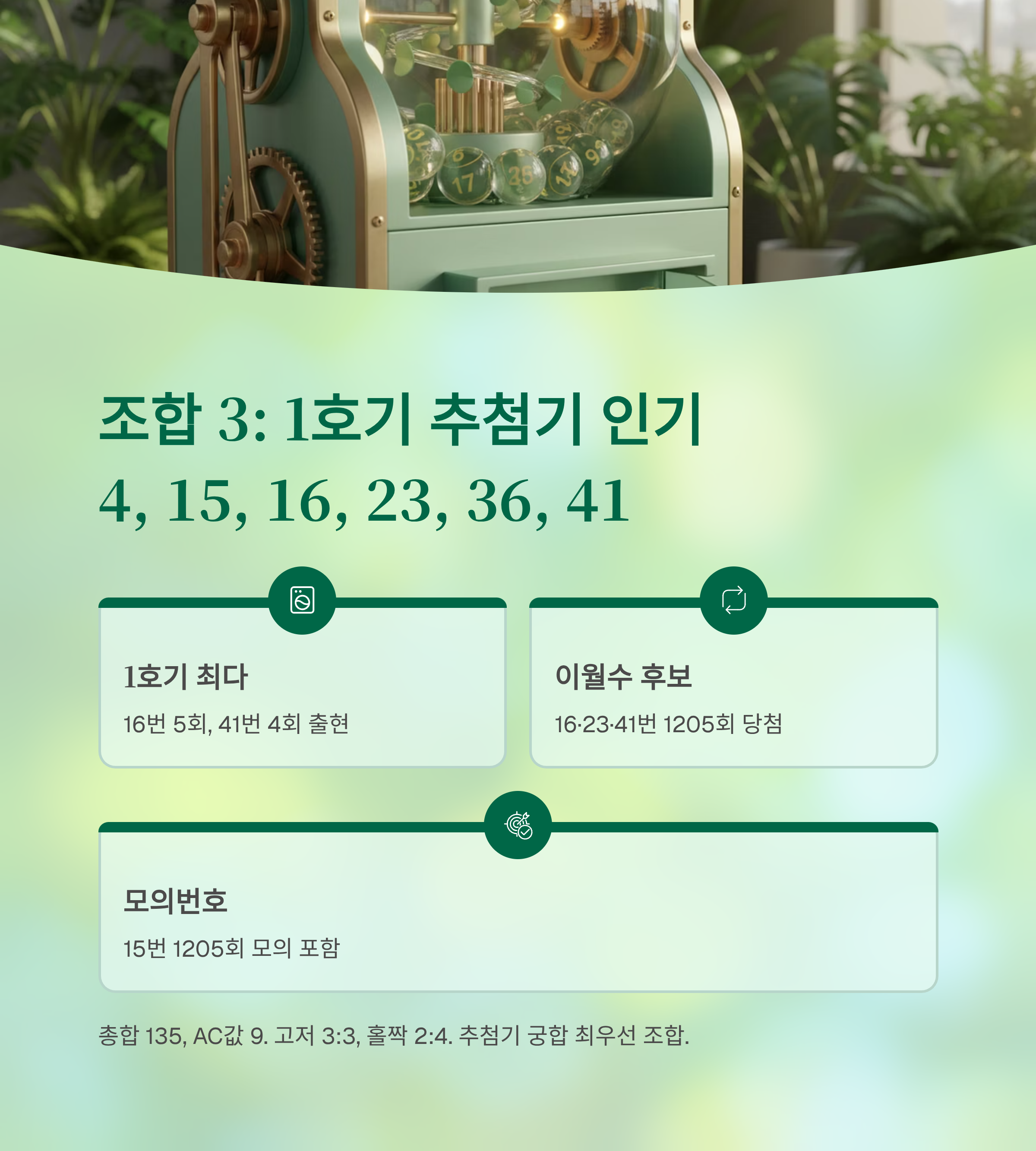 조합 3: 1호기 추첨기 인기 번호 조합