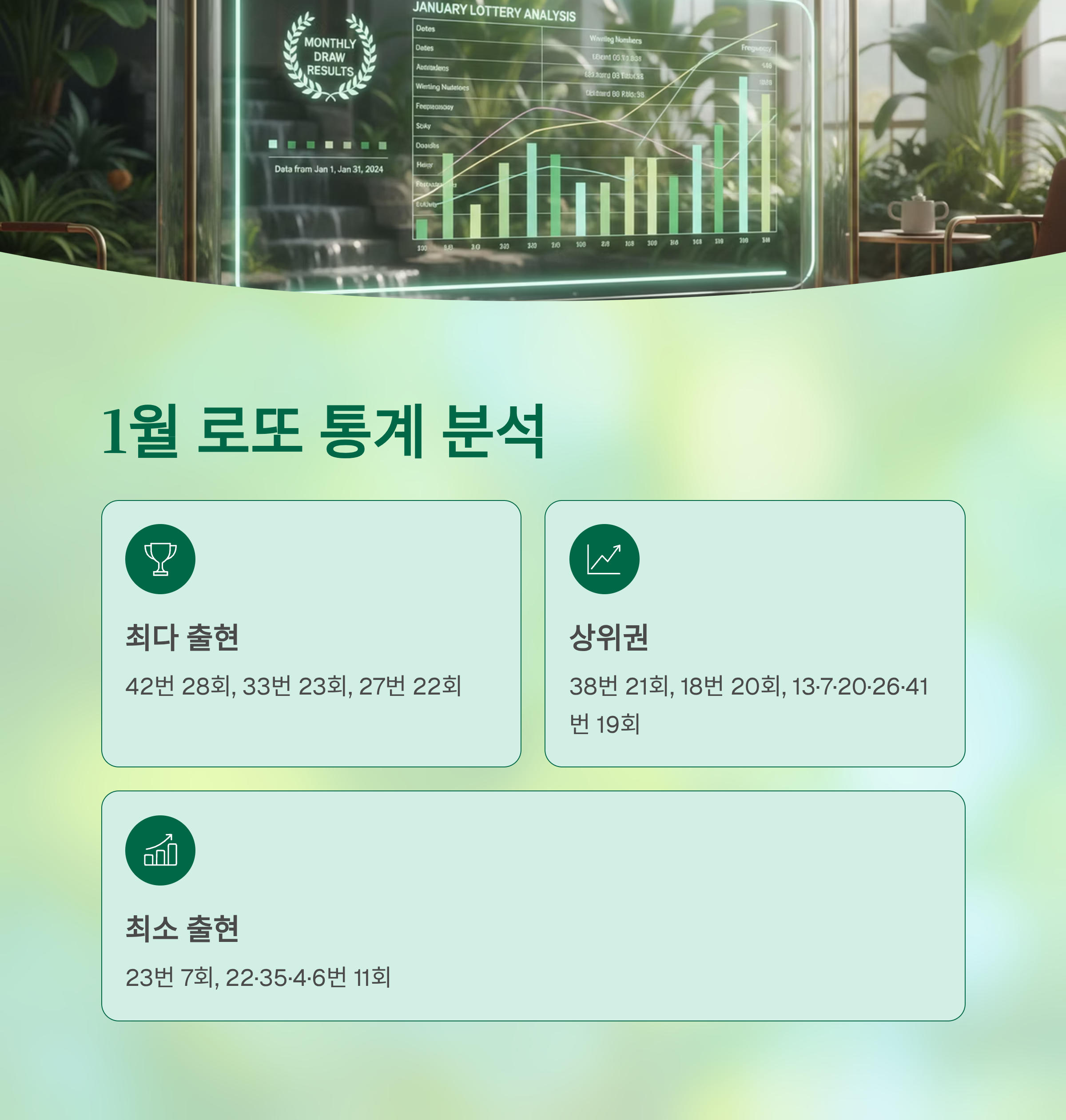 1월에는 1호기 추첨기가 가동되며, 역대 1월 통계와 최근 패턴을 종합적으로 살펴보며 행운 번호 선택에 도움이 되는 정보를 제공해 드리겠습니다.