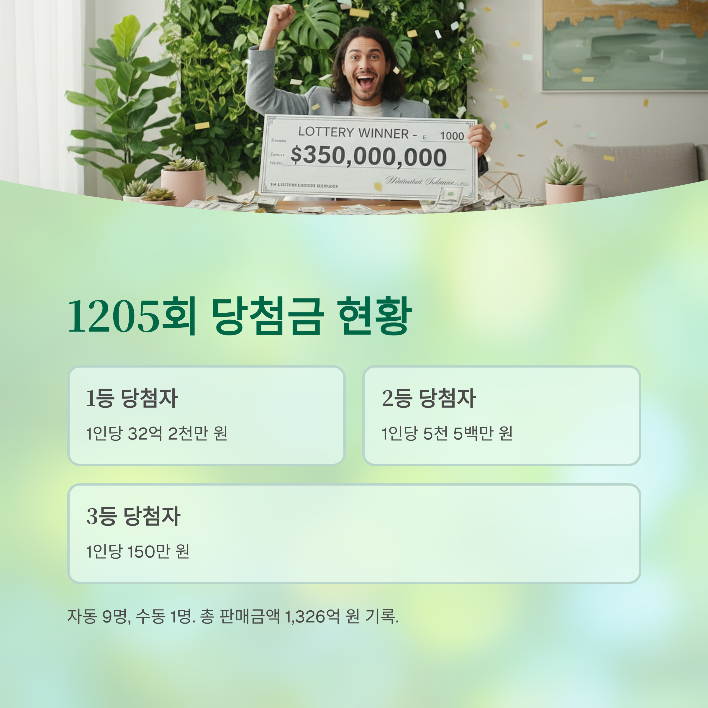 지난 1205회차에서는 10명의 1등 당첨자가 탄생하며 1인당 약 32억 2천만원의 당첨금이 지급되었습니다. 이번 글에서는 1205회 당첨번호 특징부터 1206회 예상번호까지 체계적으로 분석하려고 합니다.