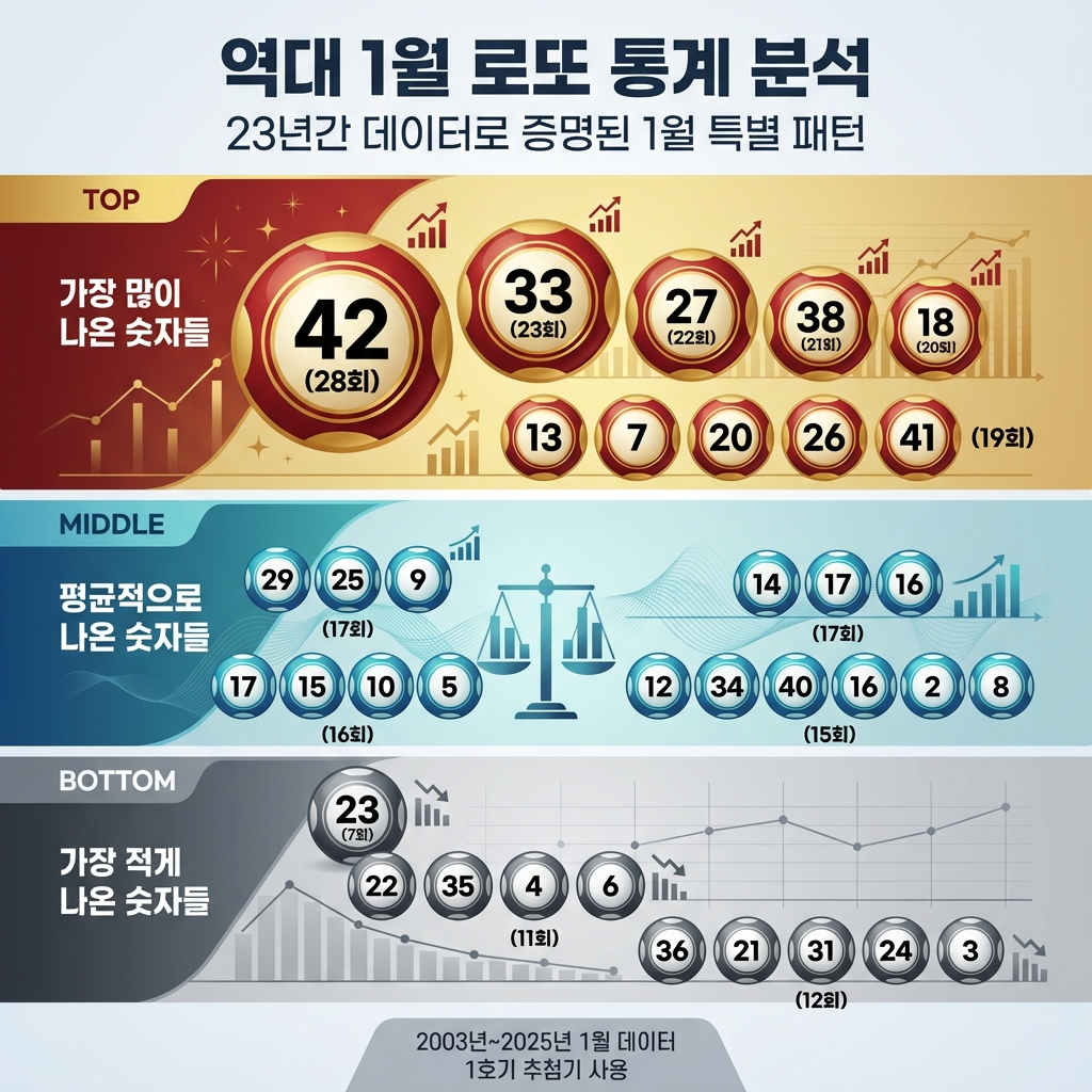 2003년 1월부터 2025년 1월까지 축적된 방대한 데이터를 통해 1월만의 독특한 로또 패턴을 발견할 수 있습니다.