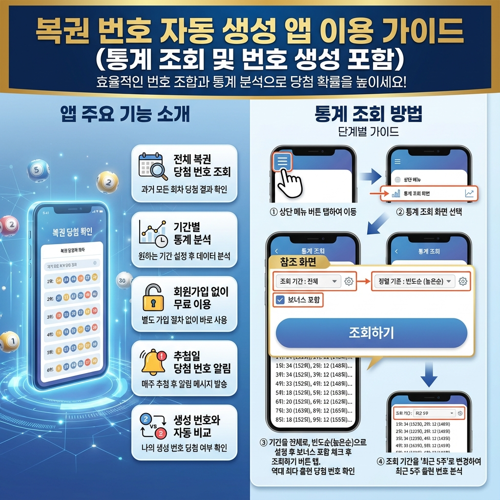 로또번호 자동생성 앱 사용법 | 통계 조회 및 번호 생성