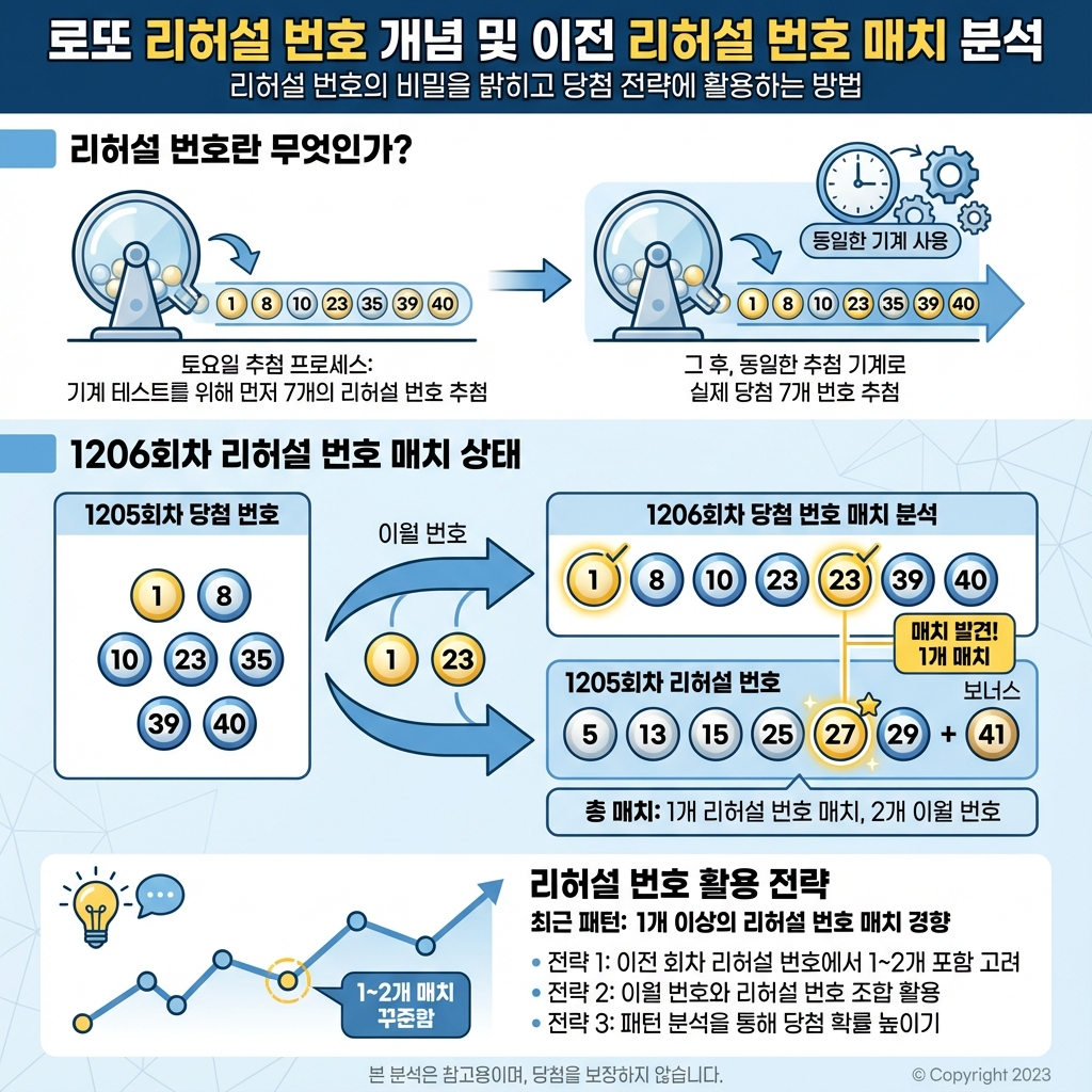 1206회 당첨번호 중 1번과 23번은 직전 1205회 당첨번호에서 이월되었습니다.