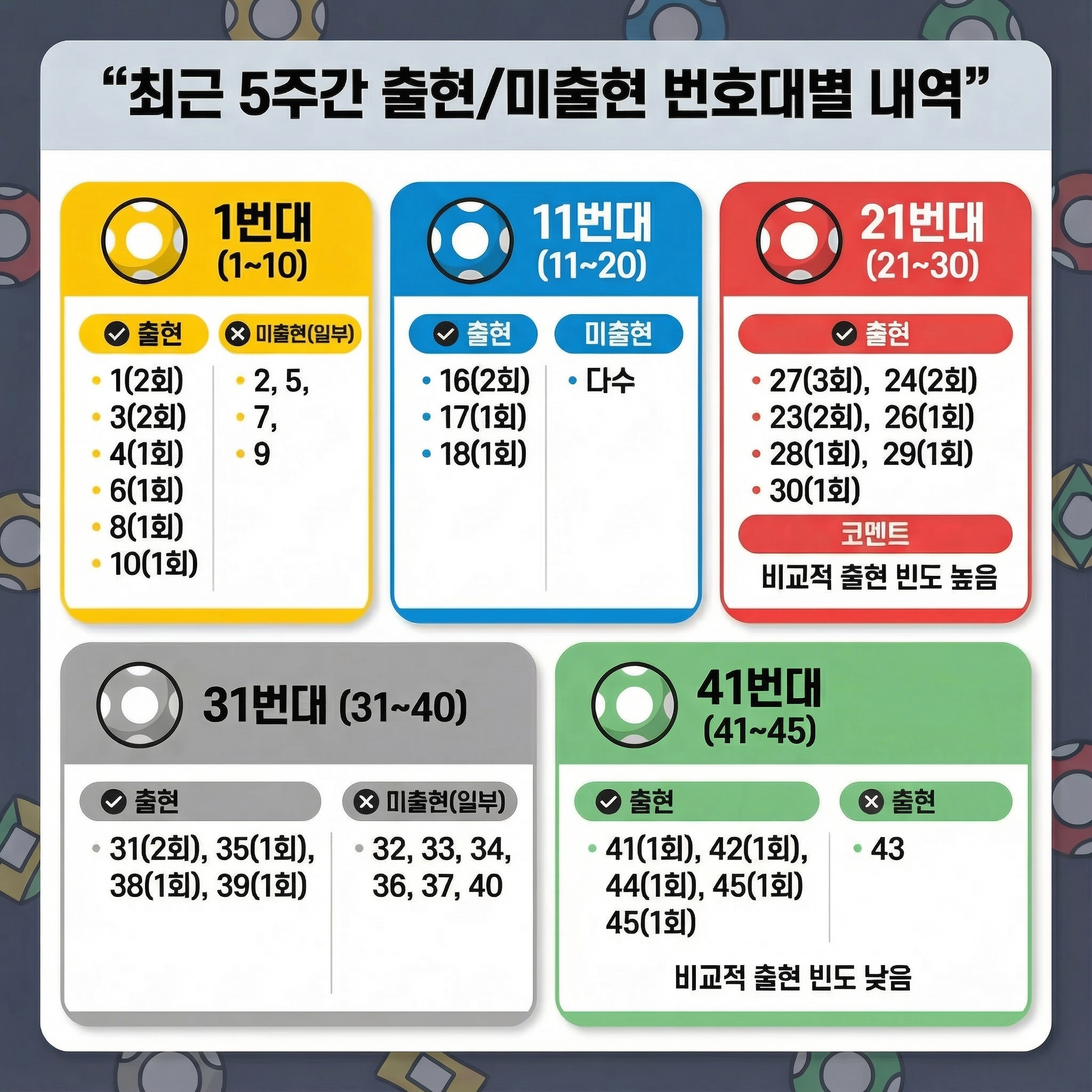 최근 5주간 당첨 패턴을 번호대별로 더 자세히 분석해 보겠습니다.