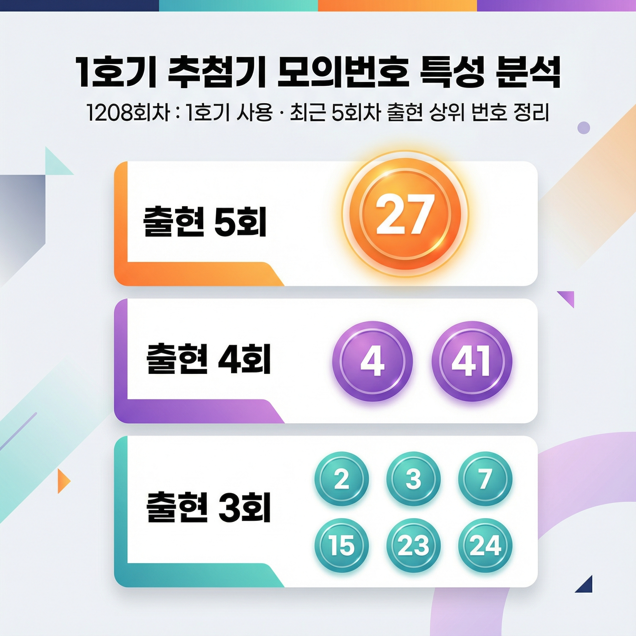 이는 1207회 모의번호가 1호기 추첨기의 최근 출현 특성을 잘 반영하고 있음을 보여주며, 1208회 당첨번호에 포함될 가능성을 높여주는 근거가 됩니다.