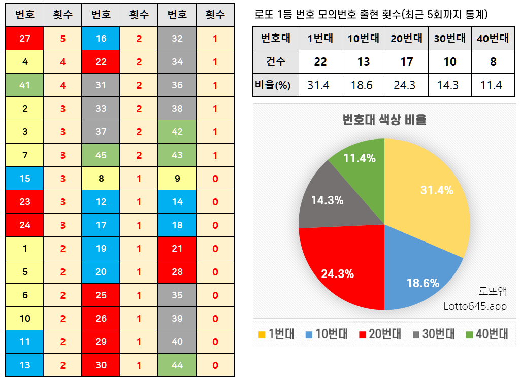 | 27번 | 역대 최다 당첨번호, 최근 5주간 3회 출현(가장 뜨거운 수) |