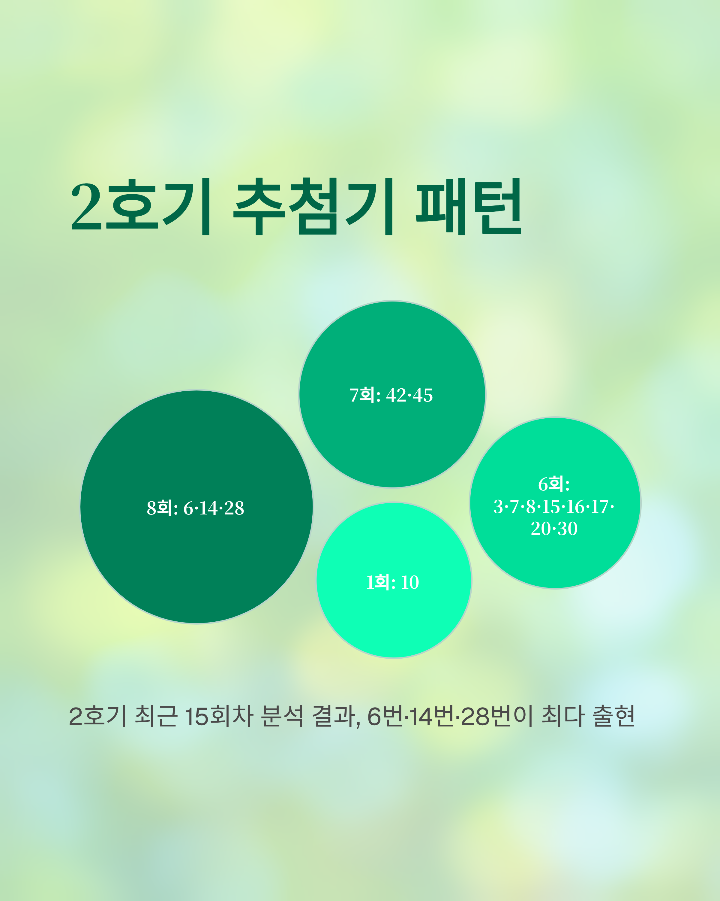 2호기 추첨기에서 최근 15회차까지 출현횟수가 높은 번호들을 분석해 보았습니다.