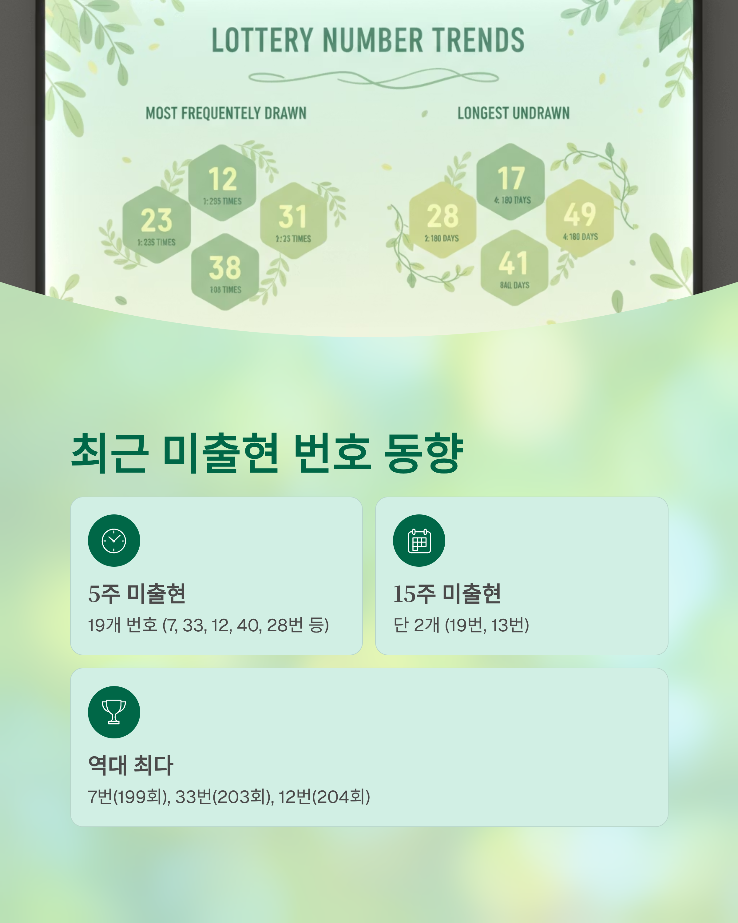 - 12번: 5주간 미출현, 역대 당첨횟수 204회로 공동 2위