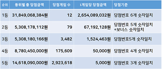 1212회 로또 당첨금 및 당첨자 현황은 다음과 같습니다.