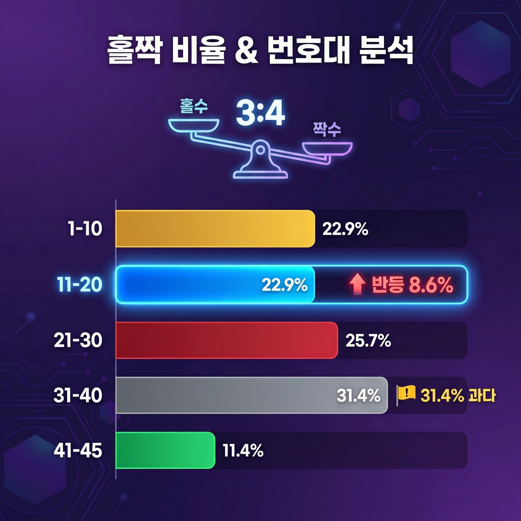 홀짝 비율 및 번호대 분석