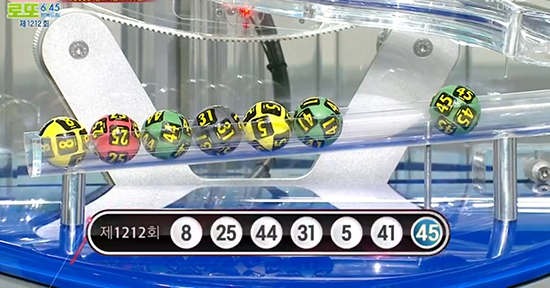 1등 당첨번호 : 5, 8, 25, 31, 41, 44 + 보너스 45