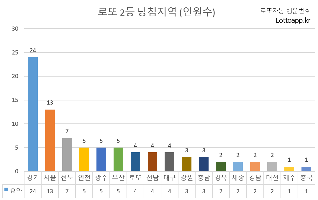 2등 당첨자 지역별 분포는 다음과 같습니다.