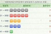 10번대 기준에서는 20번대, 30번대가 10회 당첨되었고, 이어서 10번대가 9회 당첨되었네요.
