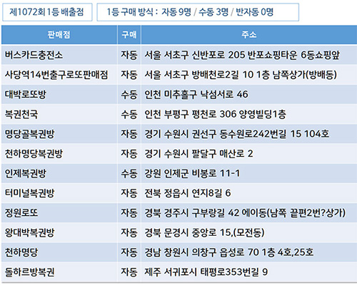 로또 1등 2등 당첨자 인원수, 로또 1등 배출점, 로또당첨지역, 로또 1등 당첨자 자동 수동 반자동 구매 유형, 로또명당, 로또판매점 위치, 로또2등 당첨점, 로또 당첨 등수별 당첨인원, 당첨금, 당첨기준 등 나눔로또 동행복권 당첨결과 확인에 꼭 필요한 자료들로 가득합니다.